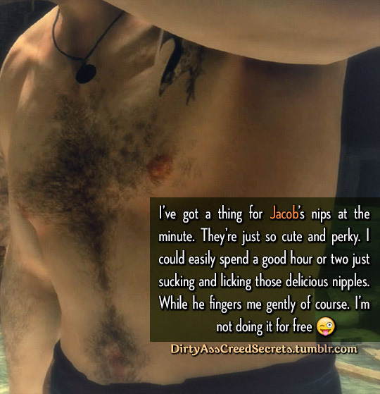 ‘I love how each of the AC boys/girls have their sexual dualities; both rough and hungry yet soft and passionate. I’m sure Jacob or Edward, beasts as they are, can be soft, warm and make your heart cum out of your pussy. And yet hunks like Arno and Connor can also be dominant and relentless, hips whipping against your clit till you’re sore down there it’s almost blue 😍’