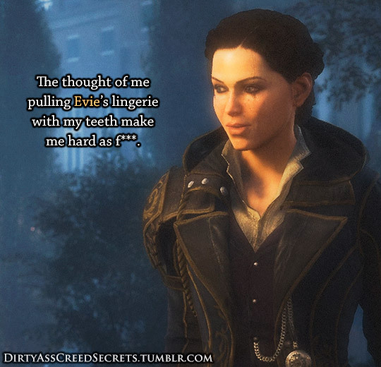 ‘I would love to have a threesome with James Kidd/Mary Read and Evie Frye. I would delve my face into Evie’s sweet pussy while Mary ate me out and played with my tits.’