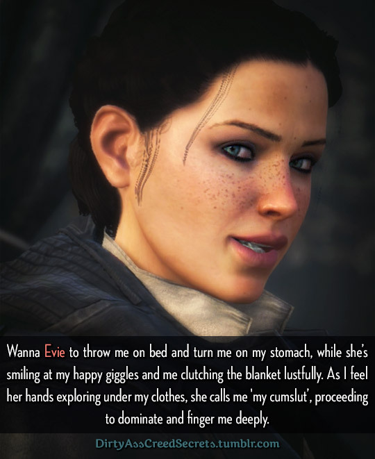 “Evie and I are sitting in her room, talking and doing stuff, and as I’m about to make a move towards her, she tells me that Jacob was always in to me from the first time he saw me. Surprised, I tell her that I kinda liked him, but then I saw that he has no interest to me, however, I do really like her. “Y/n, I can’t do this to my brother…” Evie said as she was trying not to look at me. “But why do I think that I’m not the only one who wants it?” I teased her, as I came closer to her, kissing her. “Maybe one time won’t hurt anyone..” she pulled me closer to her, as she started undressing me, always having that smirk on her face, before she kneels down to me…”